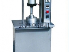 是将用水和好的面做成一种饼状熟食的机器,它由机架、气动元件、电器元件、加热元件和成型模具组成,主要用于压烤鸭面饼、鸡蛋饼以及其他品种面饼的使用。可根据需要设定加热温度和加热时间,能在设定的时间内完成压制和加热工作, 压饼机速度快每小时可做近千张饼(相当于人工20人以上)成本低每千张耗电量不足1元钱成型好由机器做出的烤鸭饼厚薄均匀、光滑圆润好,操作不需要技术含量,使用时打开电源开关,设定加热时间和加热温度,按下启动开关,压饼机模具压下,设定时间终了时自动复位。温控表显示上、下加热温度,达到设定温度时自动停止加热,低于设定温度时自动通电加热,达到设定的工作温度时即可进行工作将定量的面坯放在模具上,按下启动开关,上模具压下,加热时间终了时上模具升起。速度快,效率高,应用广泛。